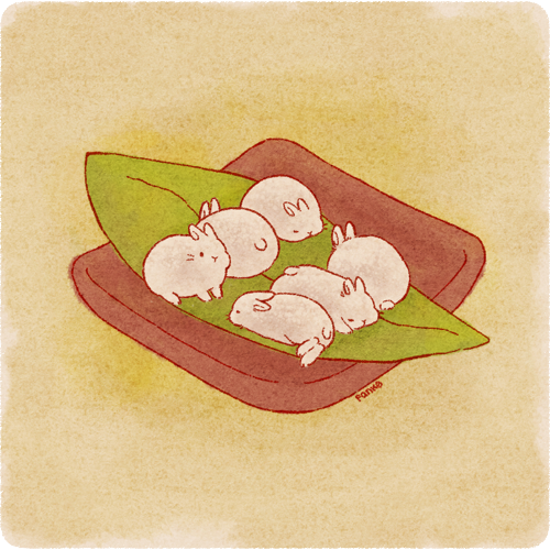 Styles range from a more "cartoony" look (example: koi pond) to a more realistic style (example: mochi bunnies on the left)
